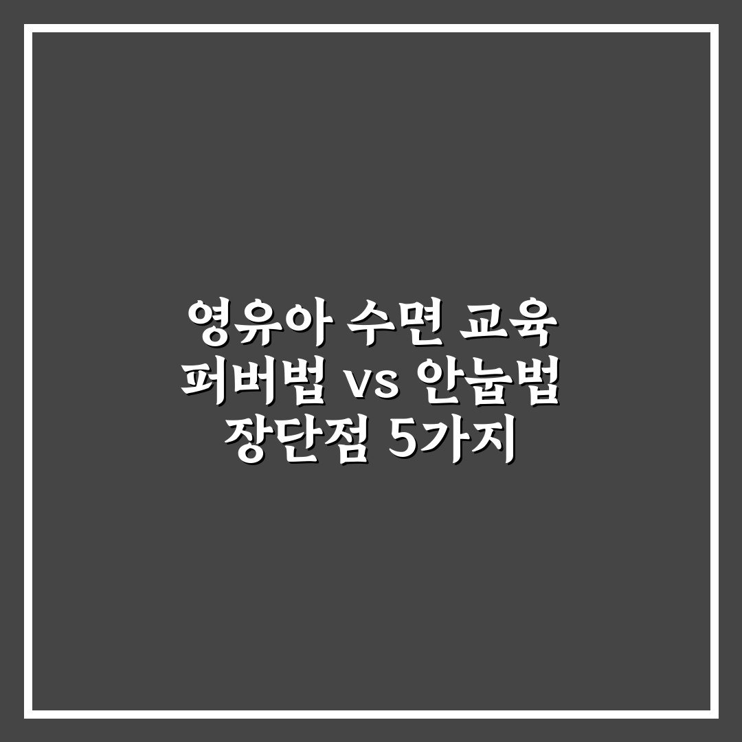 영유아 수면 교육 퍼버법 vs 안눕법 장단점 5가지 핵심가이드 2026년 03월 25일 영유아 수면 교육 퍼버법 vs 안눕법 장단점을 비교해 각각의 특징과 효과를 이해하고 아이에게 맞는 방법을 선택하는 데 도움을 드립니다