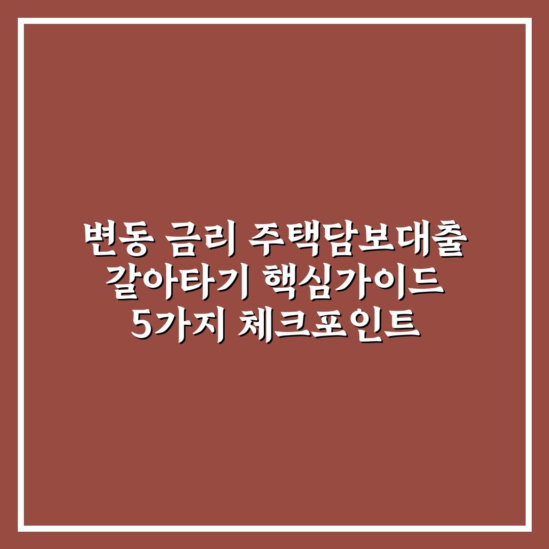 변동 금리 주택담보대출 갈아타기 핵심가이드 5가지 체크포인트 2026년 04월 21일 변동 금리 주택담보대출 갈아타기 시 꼭 확인해야 할 5가지 핵심 포인트와 절차를 쉽게 이해하고 현명한 선택에 도움을 드립니다